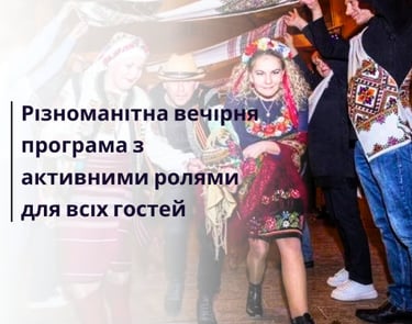 Культурне значення: Захід символізує українські традиції, креативність та єдність. Відчуйте культуру та обряди українських весіль із піснями, танцями, святковим вбранням та ритуалами – живий простір для спілкування та спільного святкування.